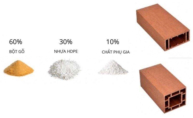 Trụ và thanh lam gỗ nhựa là sản phẩm được sản xuất từ vật liệu gỗ nhựa composite (WPC – Wood Plastic Composite) với thành phần gồm: