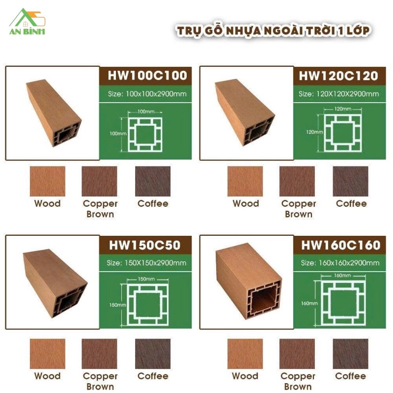 | Trụ gỗ nhựa | 100 x 100 | 3000mm | 269.000 – 320.000 |