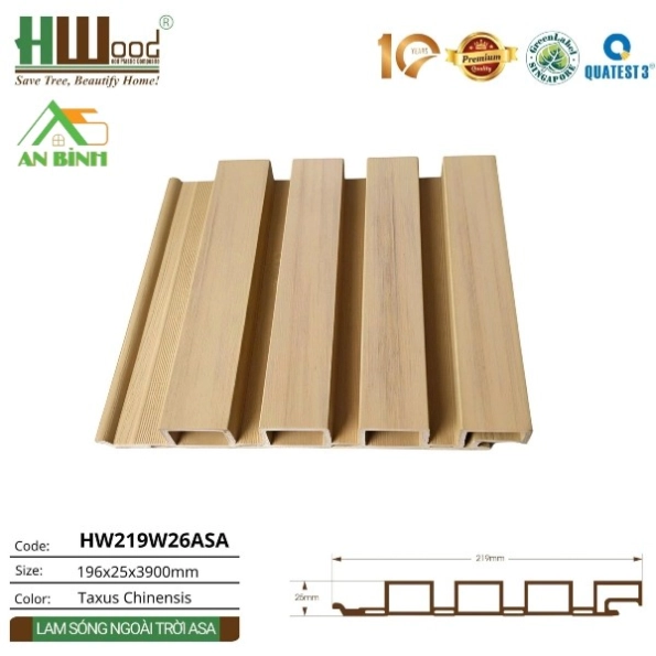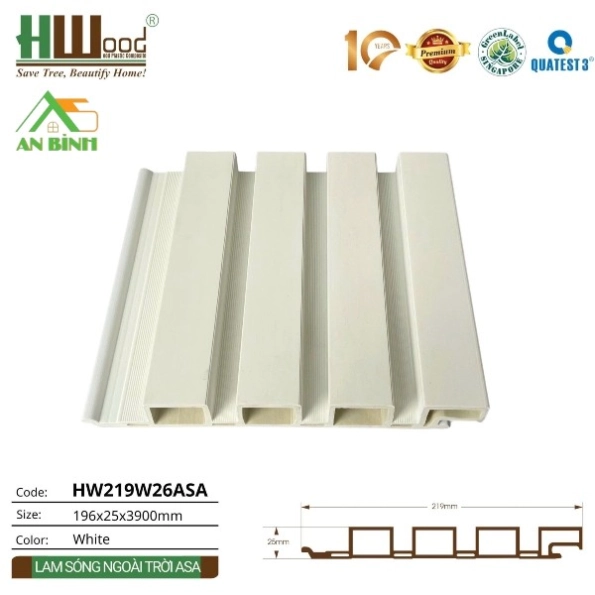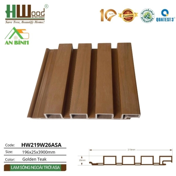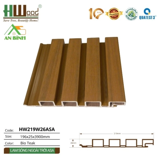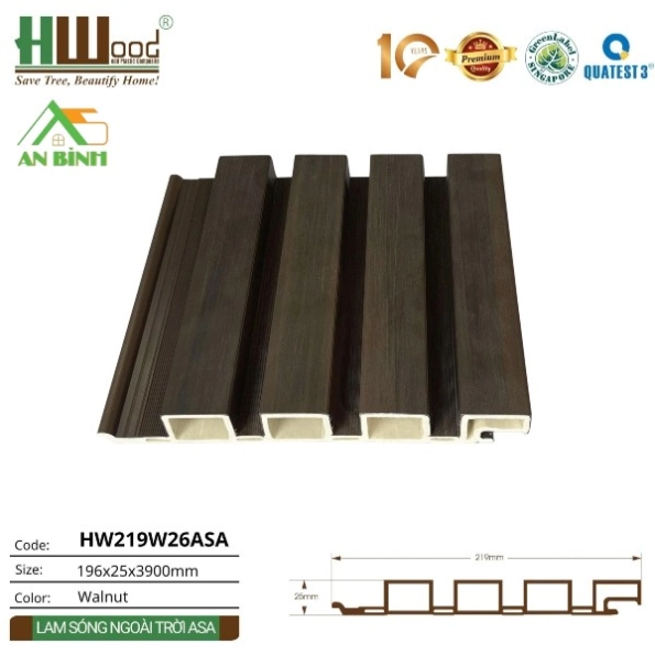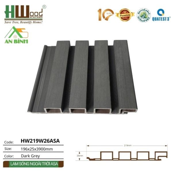 Với thiết kế sang trọng, độ bền vượt trội và khả năng chống chịu thời tiết ấn tượng, lam sóng gỗ nhựa HW219W26ASA là lựa chọn lý tưởng cho những công trình yêu cầu tính thẩm mỹ cao và tuổi thọ bền bỉ theo thời gian.