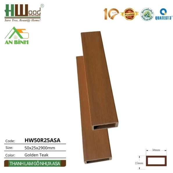 Trong xu hướng thiết kế nội - ngoại thất hiện đại thì việc sử dụng vật liệu bền đẹp, thân thiện môi trường đang ngày càng được ưa chuộng. Nổi bật trong dòng sản phẩm vật liệu xanh thì thanh lam gỗ nhựa HW50R25ASA là lựa chọn lý tưởng cho những ai tìm kiếm sự kết hợp hoàn hảo giữa thẩm mỹ và độ bền vượt trội.