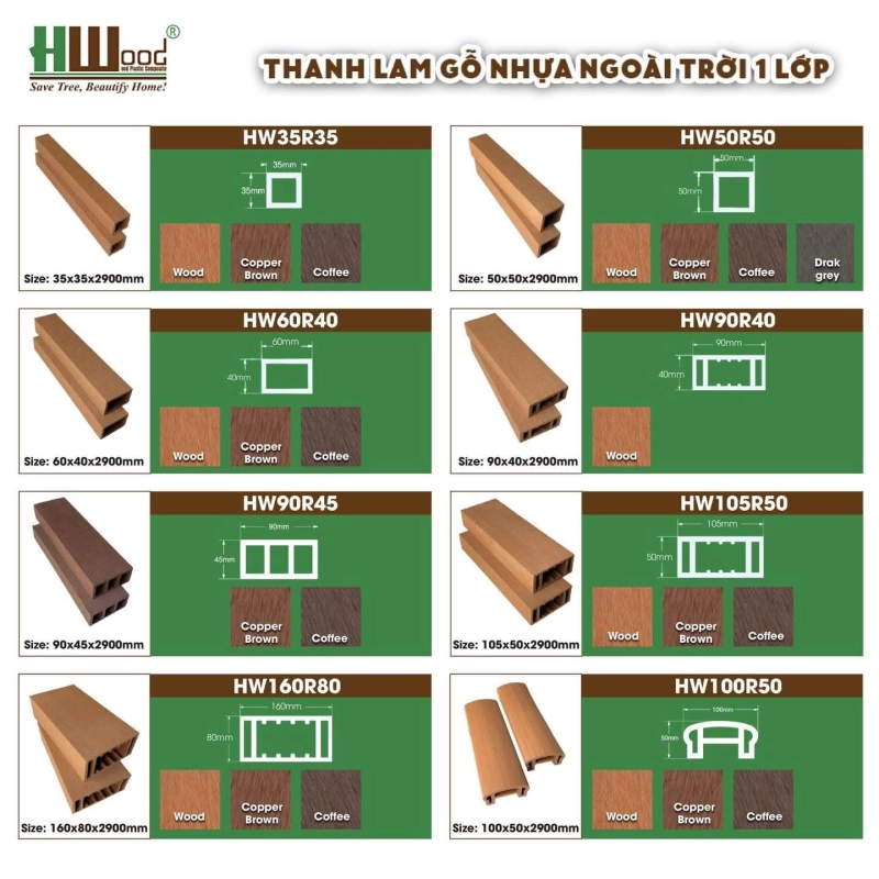 Vật liệu sử dụng: Thanh lam trụ gỗ nhựa Hwood cao cấp