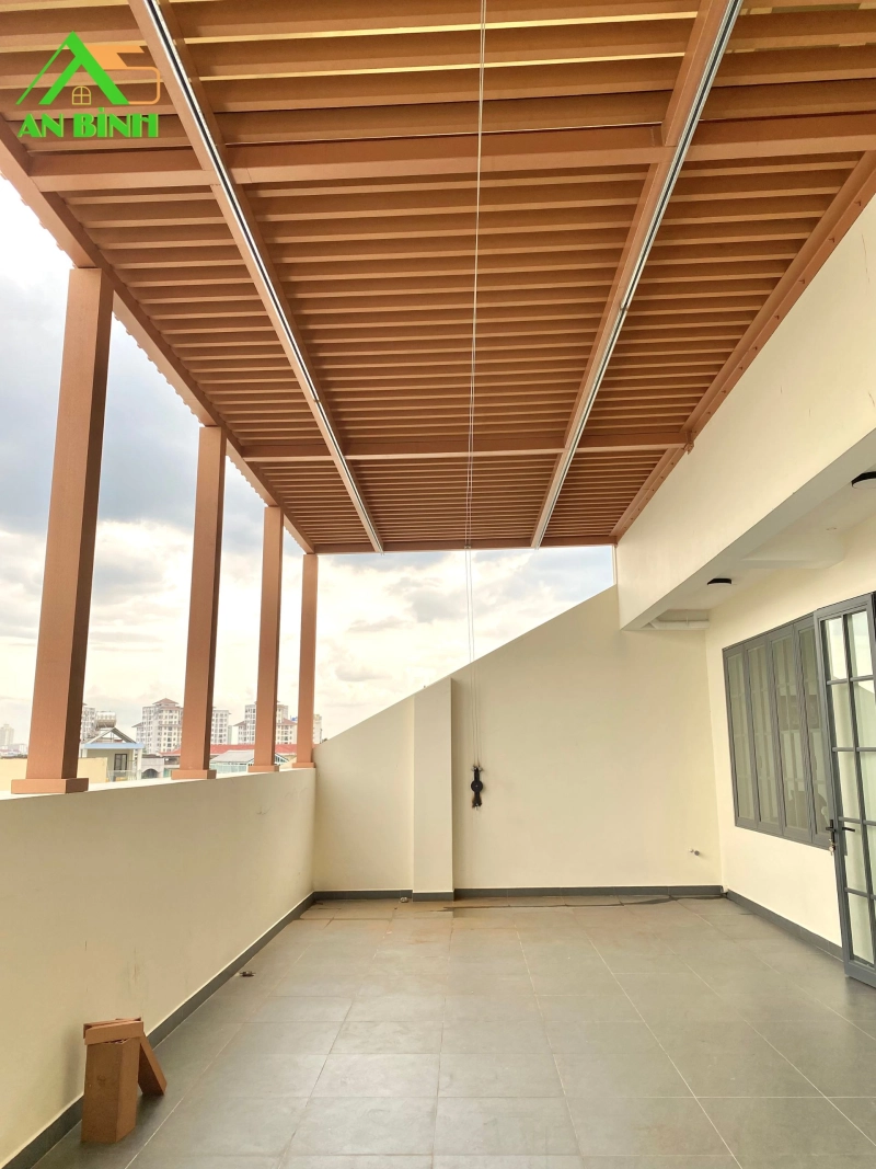 Không gian sân thượng ngày nay không chỉ là nơi phơi đồ hay đặt bồn nước, mà còn được biến tấu thành khu vực thư giãn, cà phê, hoặc tiểu cảnh xanh mát. Nắm bắt xu hướng đó, Gỗ Nhựa An Bình đã thực hiện công trình thi công giàn pergola gỗ nhựa tại đường Khuông Việt, Quận Tân Phú, mang đến một không gian ngoài trời hiện đại, tinh tế và bền vững theo thời gian.